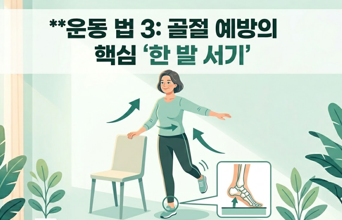 골다공증 자체보다 무서운 것은 '낙상으로 인한 골절'입니다. 균형 감각을 키우는 것만으로도 골절 위험을 절반 이하로 줄일 수 있습니다.