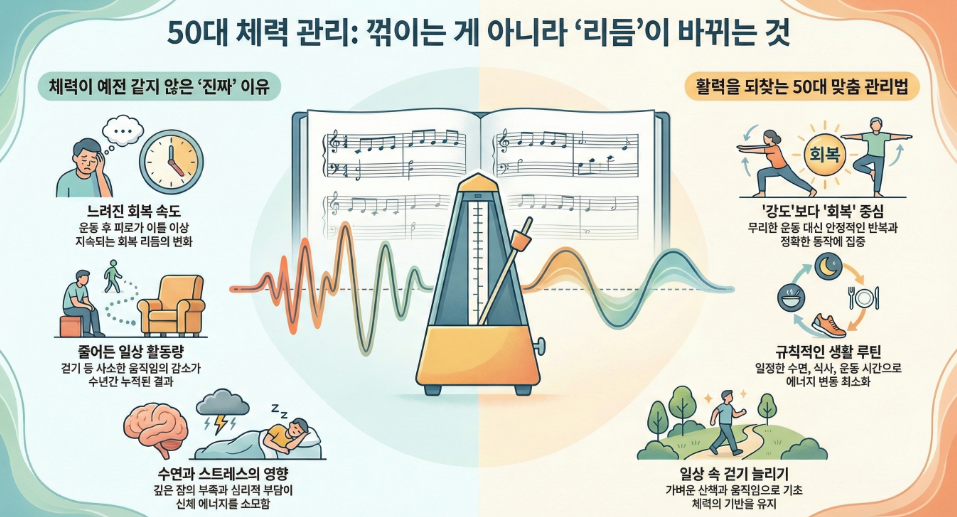 하지만 50대 이후의 50대 체력 저하는 '회복 리듬'의 변화에서 시작됩니다.