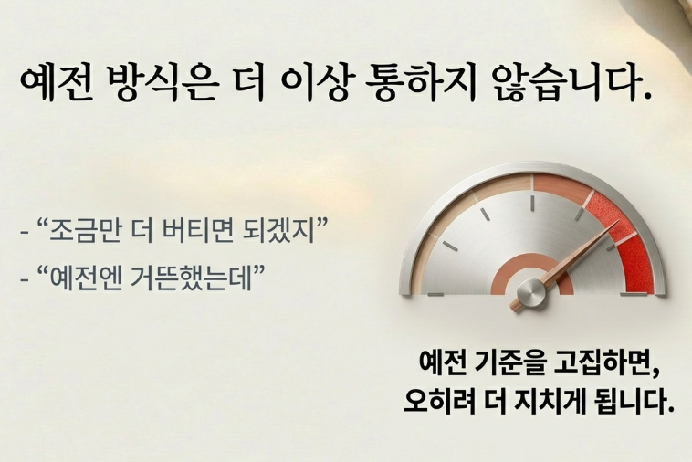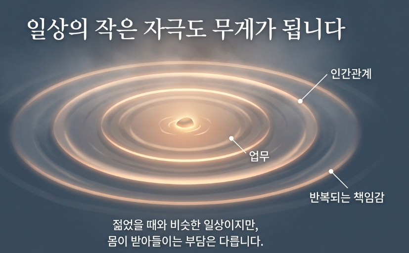 업무, 인간관계, 반복되는 책임감 등은 젊었을 때와 비슷해 보여도, 몸이 받아들이는 부담은 다르게 느껴졌습니다.