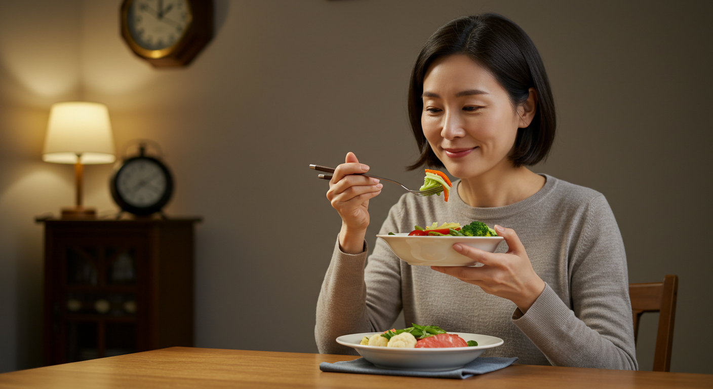 많은 양의 음식을 늦은 시간에 섭취하게 되면, 소화 과정에서 체내 수분 순환이 활발해지고, 그 결과 야간에 소변이 많이 생성되게 됩니다.