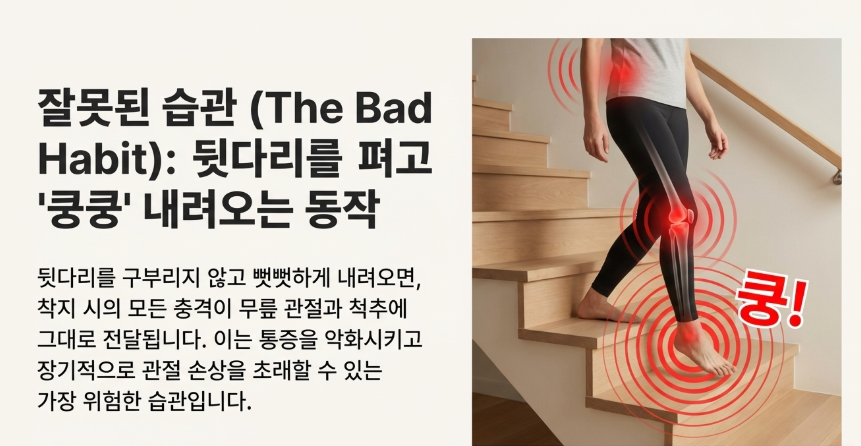 계단을 오르는 것만큼, 내려오는 자세도 무릎과 허리 건강에 결정적인 영향을 미칩니다.