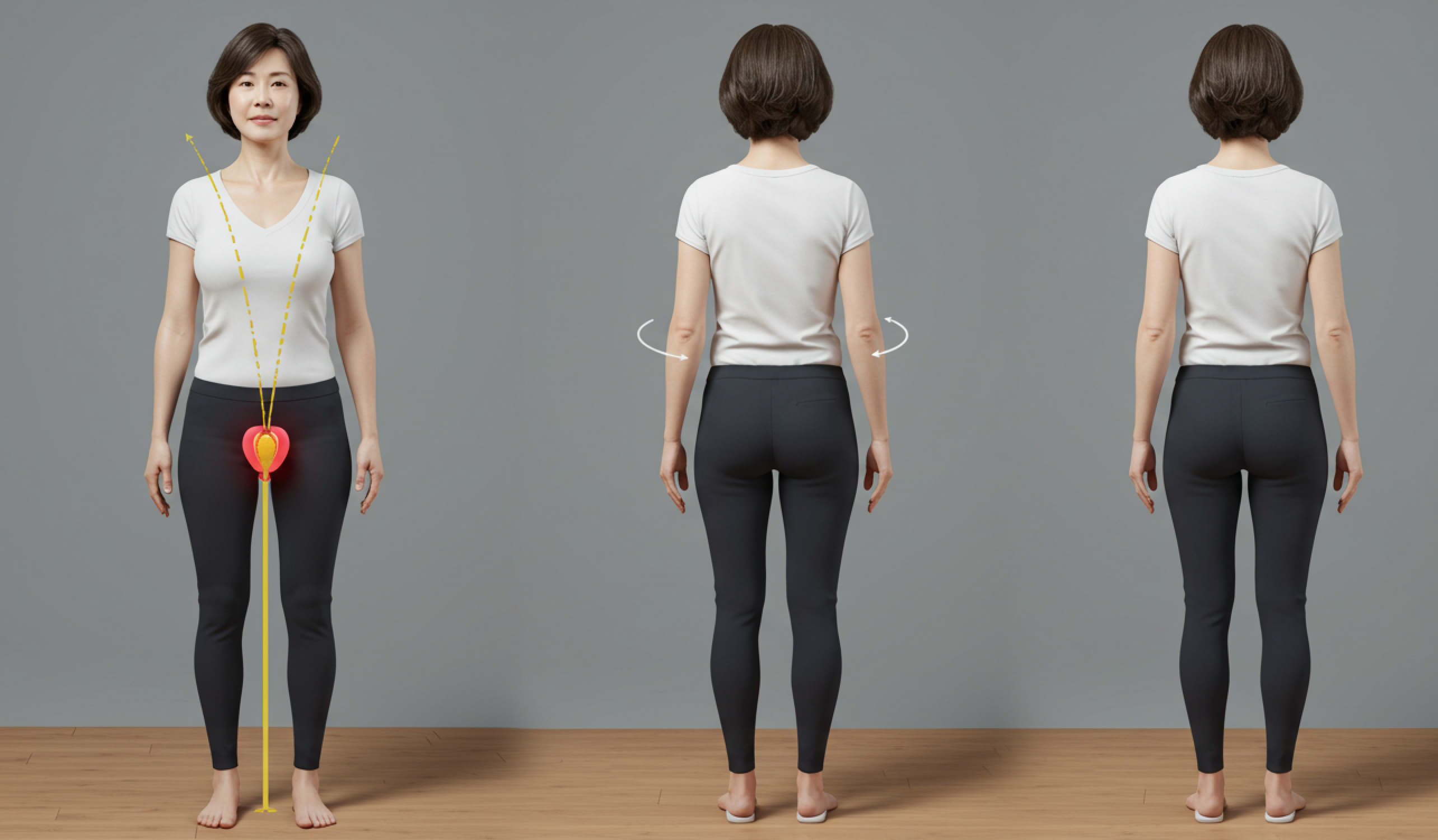 앉거나 누운 자세, 또는 선 자세 모두 가능하며 복부·허벅지·엉덩이에 힘을 주지 않고, 질과 항문 주변 근육만 조이는 느낌으로 실시합니다.