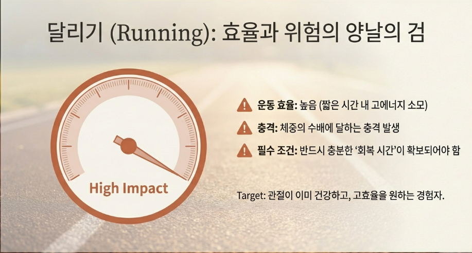 달리기를 선택한다면 운동 사이 충분한 회복 시간을 확보해야 합니다. 연속적인 고강도 달리기는 피로 누적을 유발할 수 있습니다.