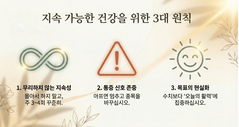 일주일에 한 번 강하게 하는 운동보다, 여러 번 안정적으로 이어가는 구조가 좋습니다.