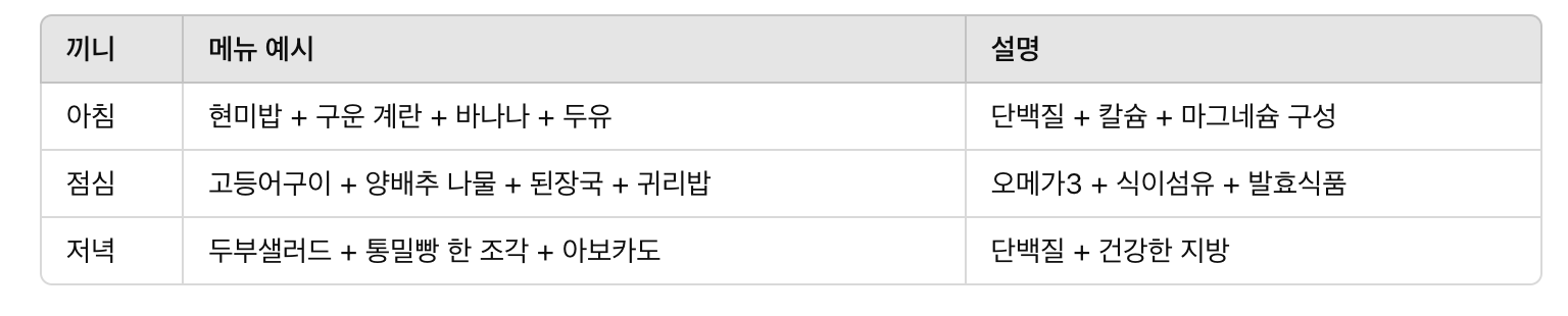 📌 실천 TIP 예시 – 하루 식단 구성표 (예시)